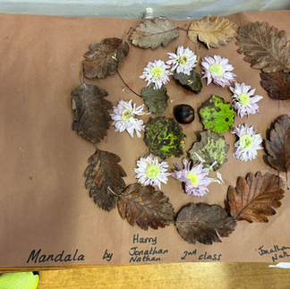 An art Gallery in the the halla marked a celebratory end to this year's Maths Week celebrations! We were thrilled to showcase a wonderful display of Junk Art creations by our talented First Class students in the halla. Every child had the opportunity to visit and admire the imaginative designs on show. Children from 2nd Class also worked collaboratively on Mandala creations using objects foraged from nature walks.